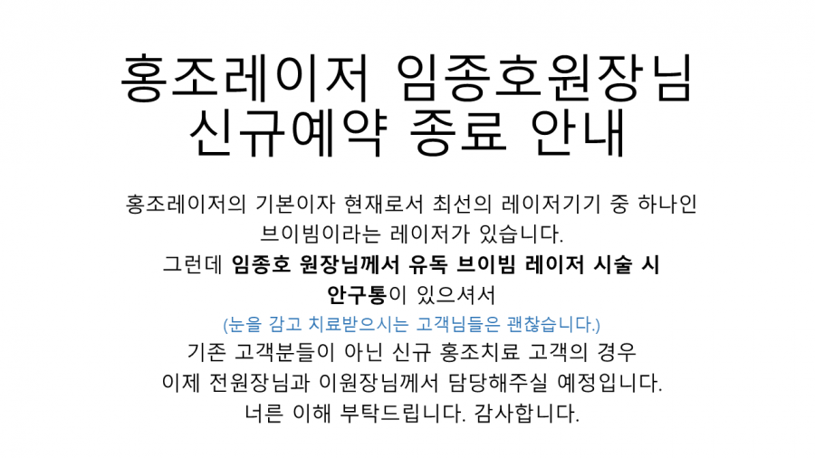 홍조레이저 임종호원장님 신규예약 종료 안내